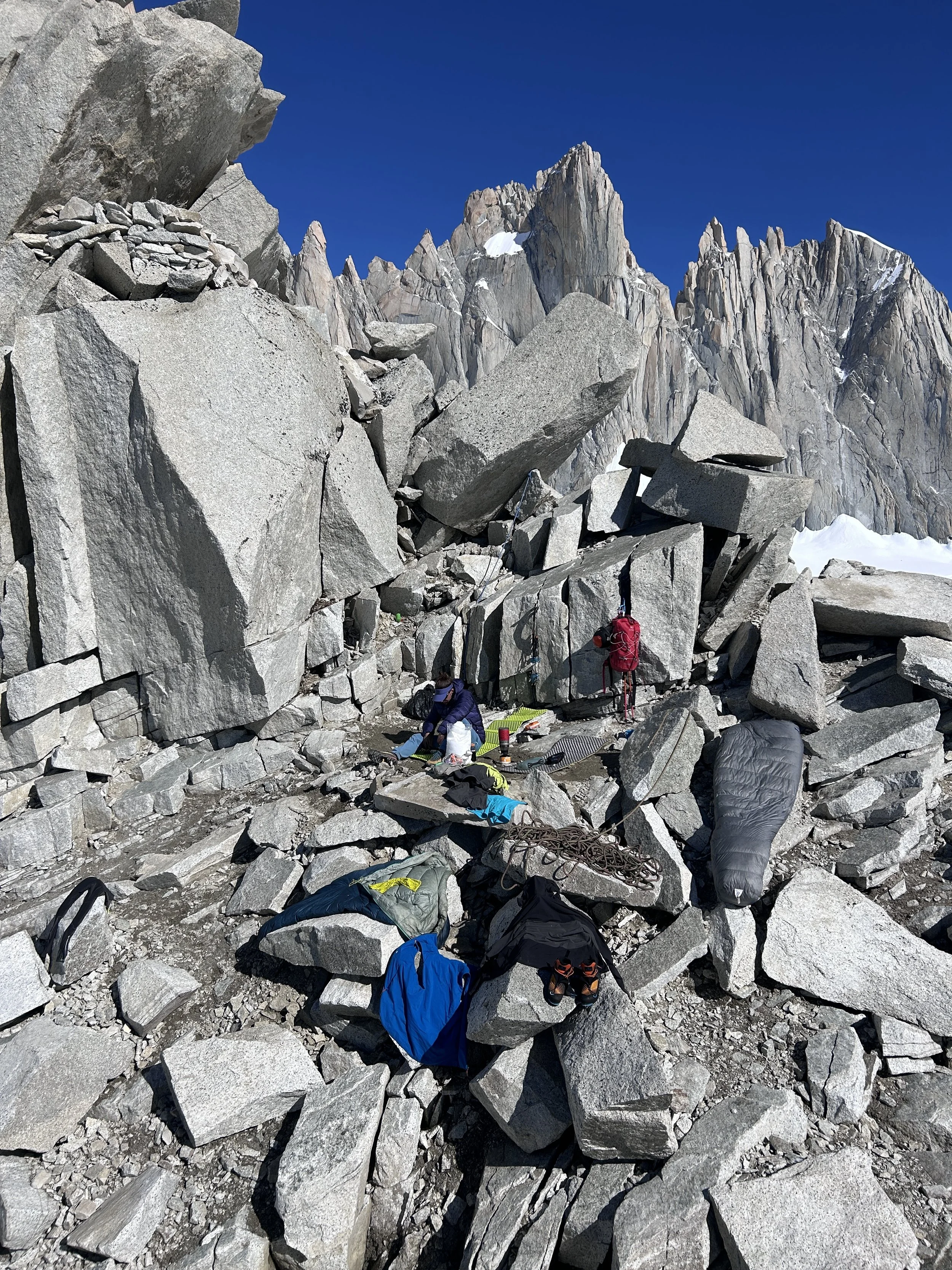 The lower tier of camp, including the area we had been using as the bathroom, filled up with several more tents. I started to feel anxious. Most of these climbers were likely here for Fitz Roy too.